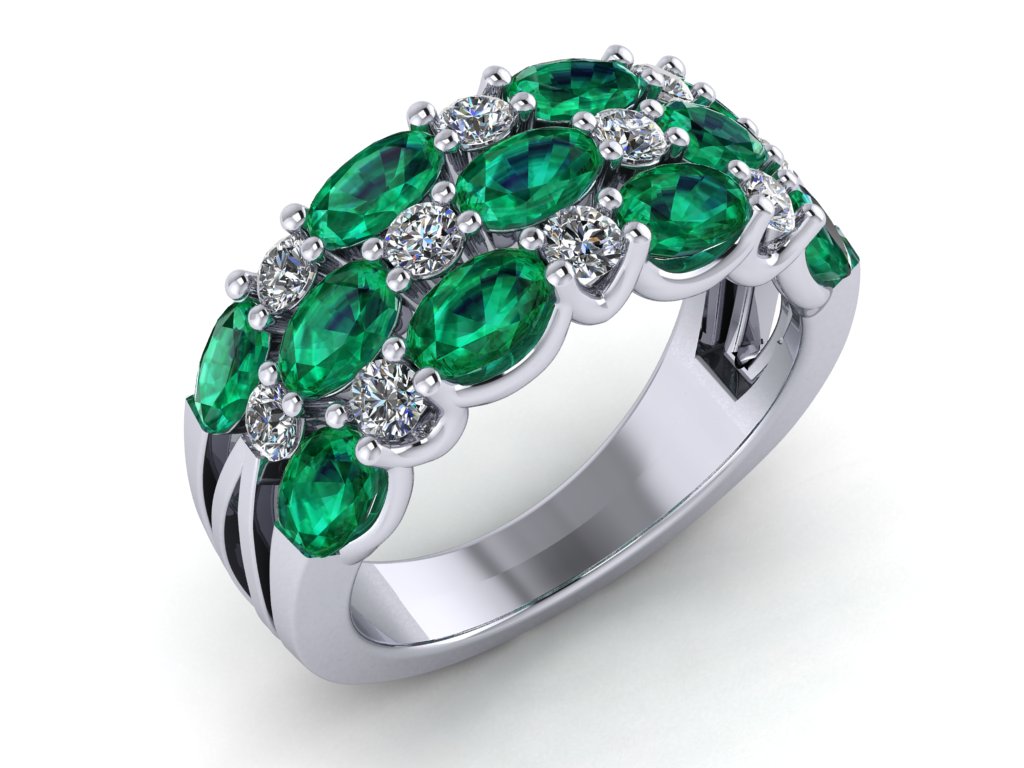 18KW Custom Three Emerald Cut Diamond Fashion Ring